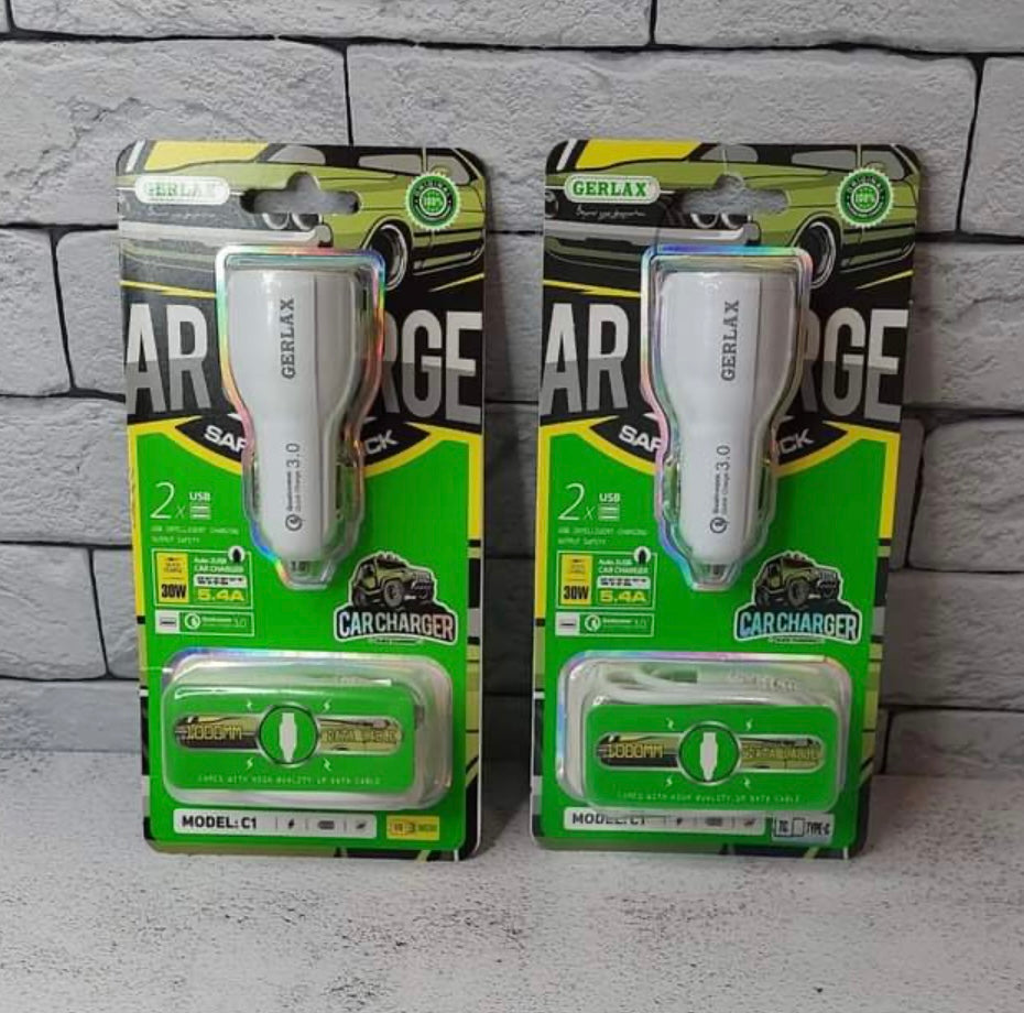 Gerlax Car Charger With Free Cable Quick Charge 3.0 Model C1