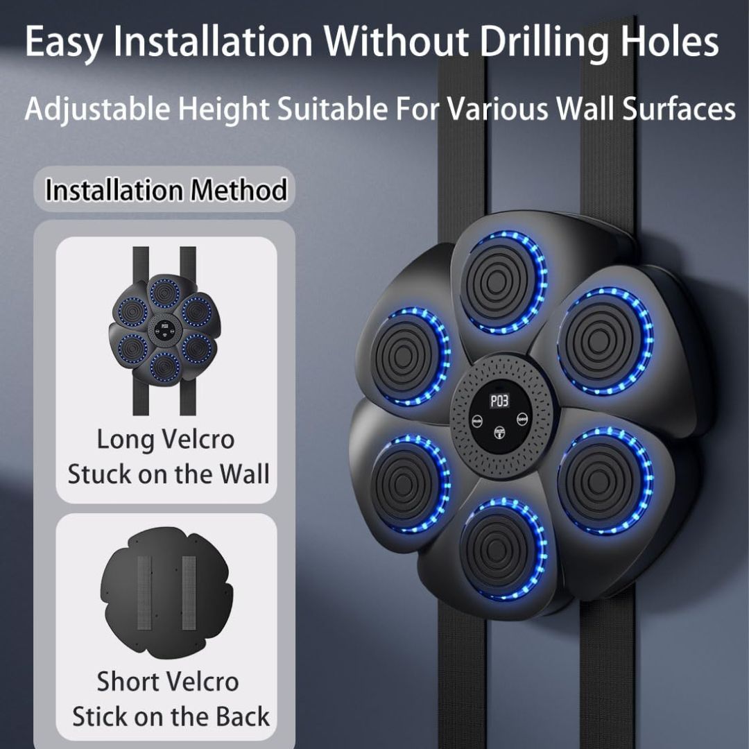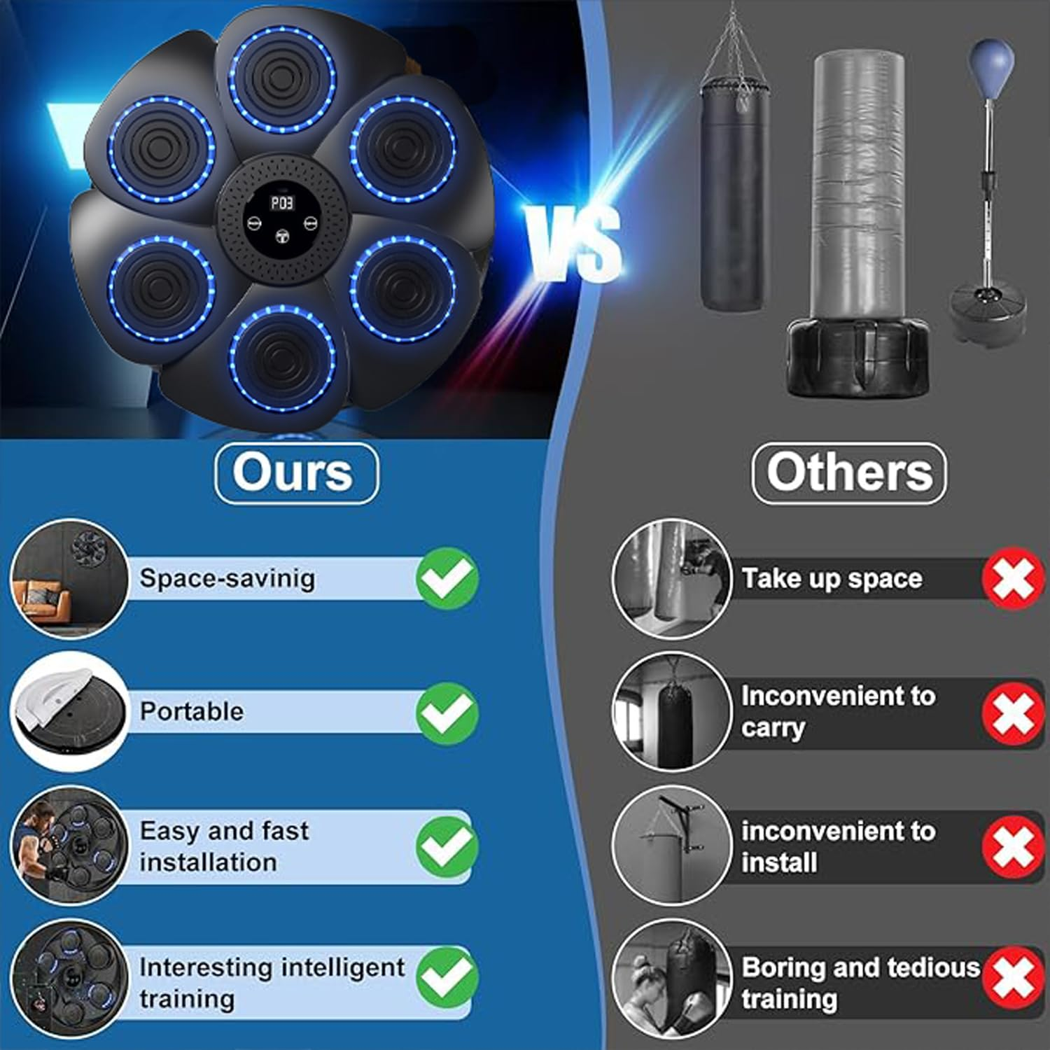 جهاز ملاكمة ذكي مزود بأضواء LED، يوفر 9 أوضاع تدريب و18 سرعة لتحسين اللياقة وردود الفعل. يتصل بالبلوتوث لتشغيل الموسيقى أثناء التمرين.