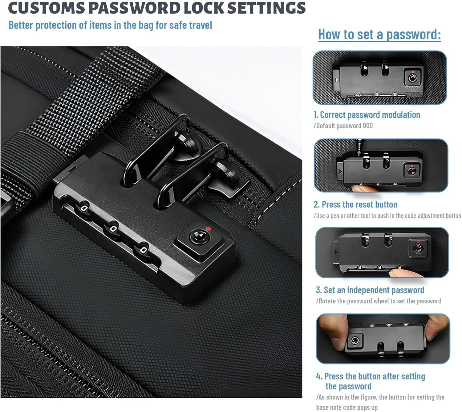 🔒 Anti-Theft Lock – Secure your belongings with a password lock and hidden zippers.
